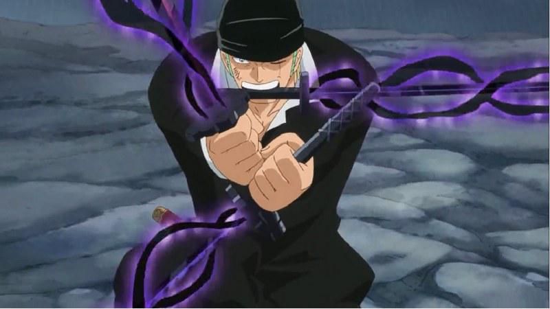 Dengan ikat kepala yang terpasang, Zoro mengeluarkan seluruh tenaganya. Puncaknya terjadi ketika ia sendirian menghadapi serangan gabungan mengerikan dari dua Yonko demi melindungi teman-temannya. Meskipun momen tersebut nyaris merenggut nyawanya dengan tulang-tulangnya patah, ia akhirnya bangkit kembali dan memberikan satu potongan terakhir yang berhasil melukai Kaido serta meninggalkan luka permanen, sebuah prestasi yang sebelumnya hanya bisa dicapai oleh Oden.
