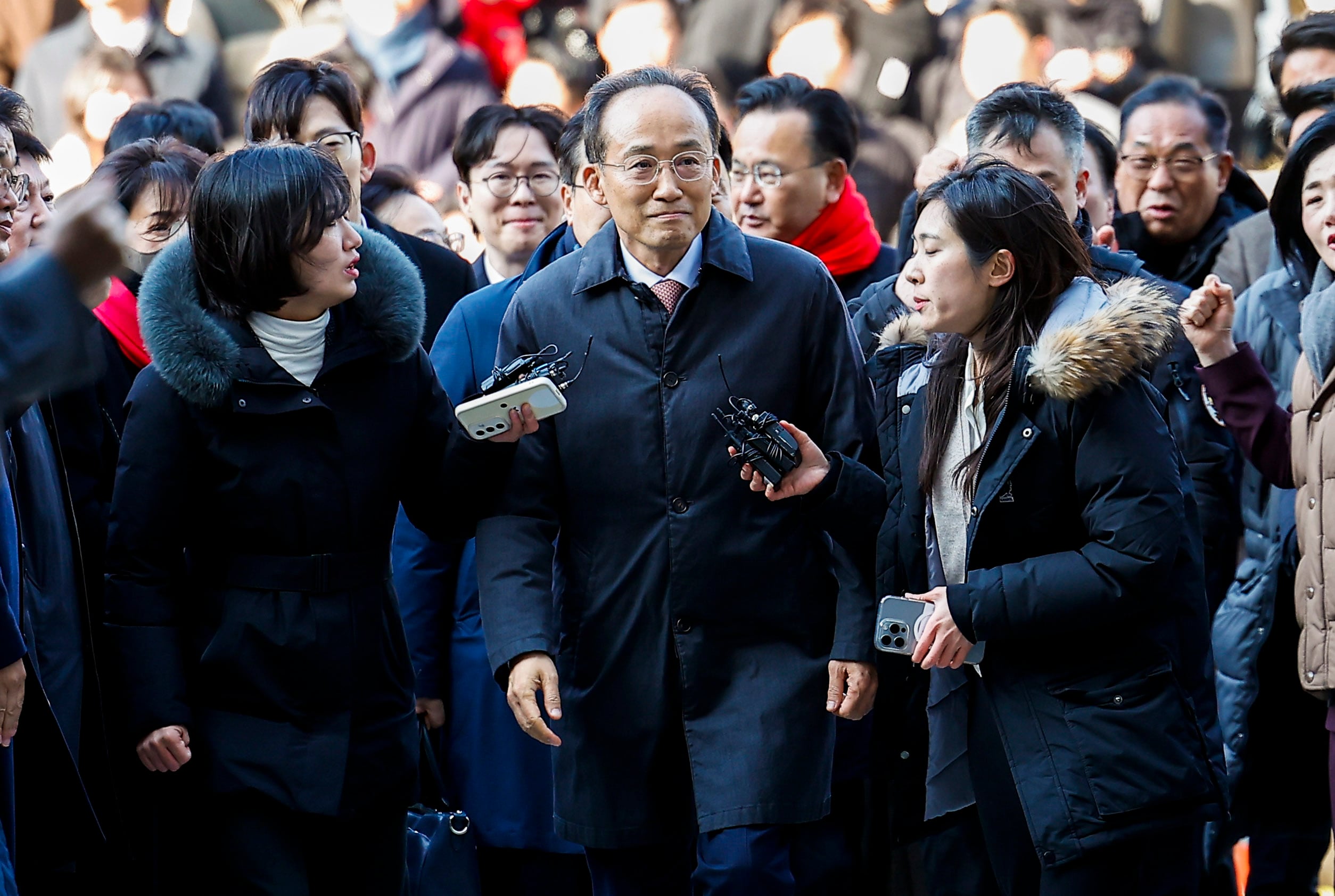 Arriving at the Seoul Central District Court around 2:20 p.m., Choo, surrounded by People Power Party lawmakers, briefly stated, “I expect a fair judgment without political bias from the court,” before entering the courtroom. He did not respond to reporters’ questions, including, “How will you explain the repeated changes to the party meeting location?” “Did former President Yoon Suk-yeol really not request cooperation?” and “When did you learn about the martial law declaration?”