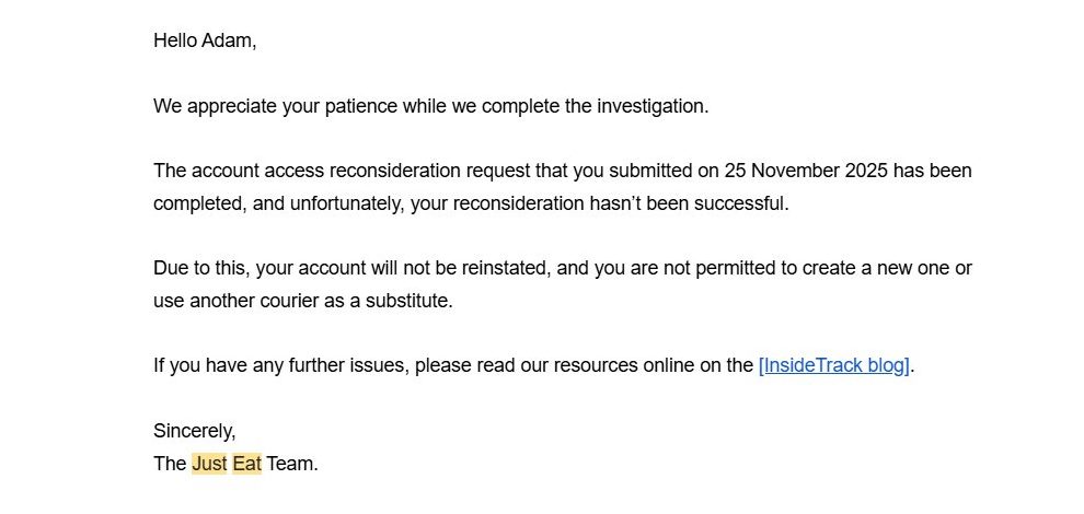 ‘Just Eat was quite nice in terms of the pay but then they just seem to be very ruthless.