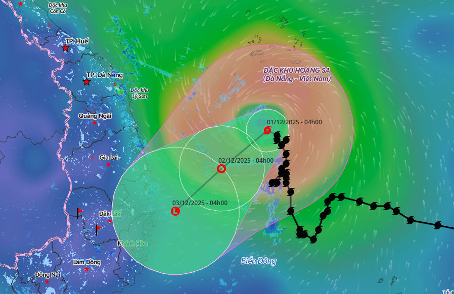Koto formed from a tropical depression east of the central Philippines, strengthened into a storm, and entered the East Sea on the night of Nov. 25. It reached its peak intensity at 118-133 kph on Nov. 27, when it was 190 km from Southwest Cay Island, part of the Truong Sa (Spratly) Islands in the East Sea, before slowing and beginning its weakening phase.